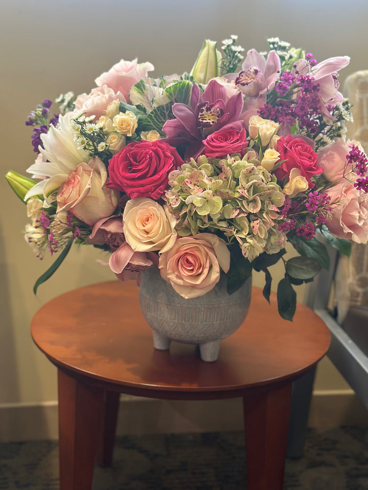 Although the actual bouquet may not precisely match the photo, its temperament will. Occasionally, substitutions of flowers and/or containers happen due to weather, seasonality and market conditions which may affect availability. If this is the case with the gift you’ve selected, we will ensure that the style, theme and color scheme of your arrangement is preserved and will only substitute items of equal value or higher value.